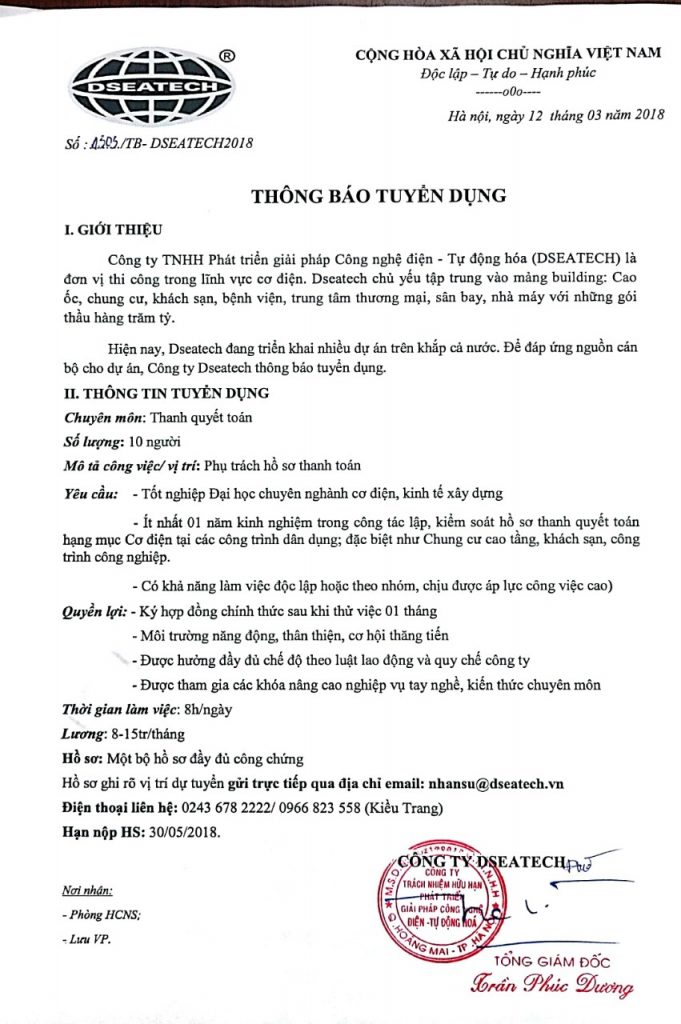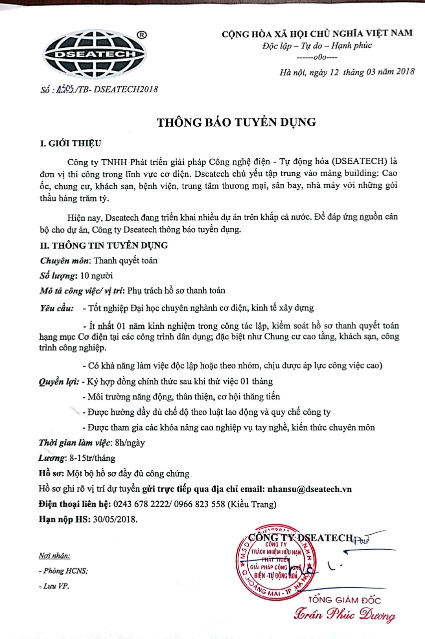 Thông báo tuyển dụng